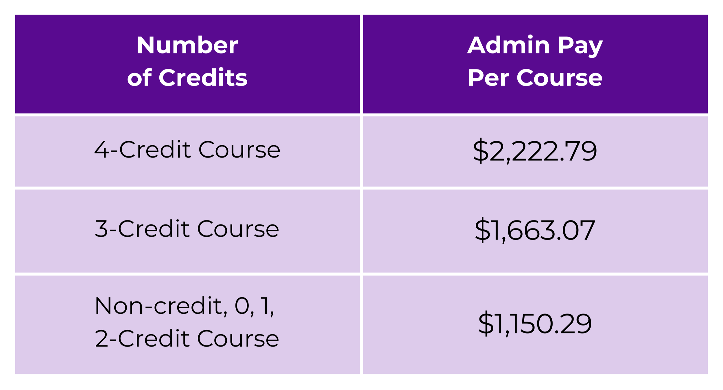 Administrative service pay is not required in reappointment letters. However, you are still eligible for administrative service pay per course, per section as follows:
